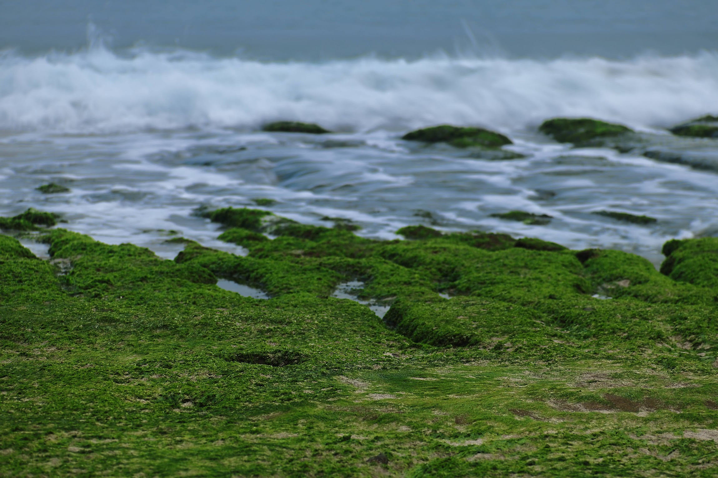 第二站前往新北市石門區老梅綠石槽、富貴角燈塔,由當地導覽者解說。位於新北市石門區老梅里的綠石槽景觀,原本是大屯火山爆發後遺留在海岸邊的火山礁岩,由於經過長時間的波浪侵蝕,質地鬆軟的部份被侵蝕,留下較堅硬的部份形成縱狀溝槽。經由東北季風帶來的浪花打在石槽表面上,滋生綠色的石蓴、海髮絲等海藻,形成令人驚嘆不已的綠色奇蹟。看完美景,沿步道走到位於新北市石門區富貴岬角的富貴角燈塔。燈塔外表為黑白平行相間的條紋,1897年完成,為建造臺灣與日本之間的海底電纜以及航路設備而建設,是日治時期興建的第一座燈塔,也是臺灣本島最北的燈塔。石門區長特別致贈石花菜伴手禮給大家。