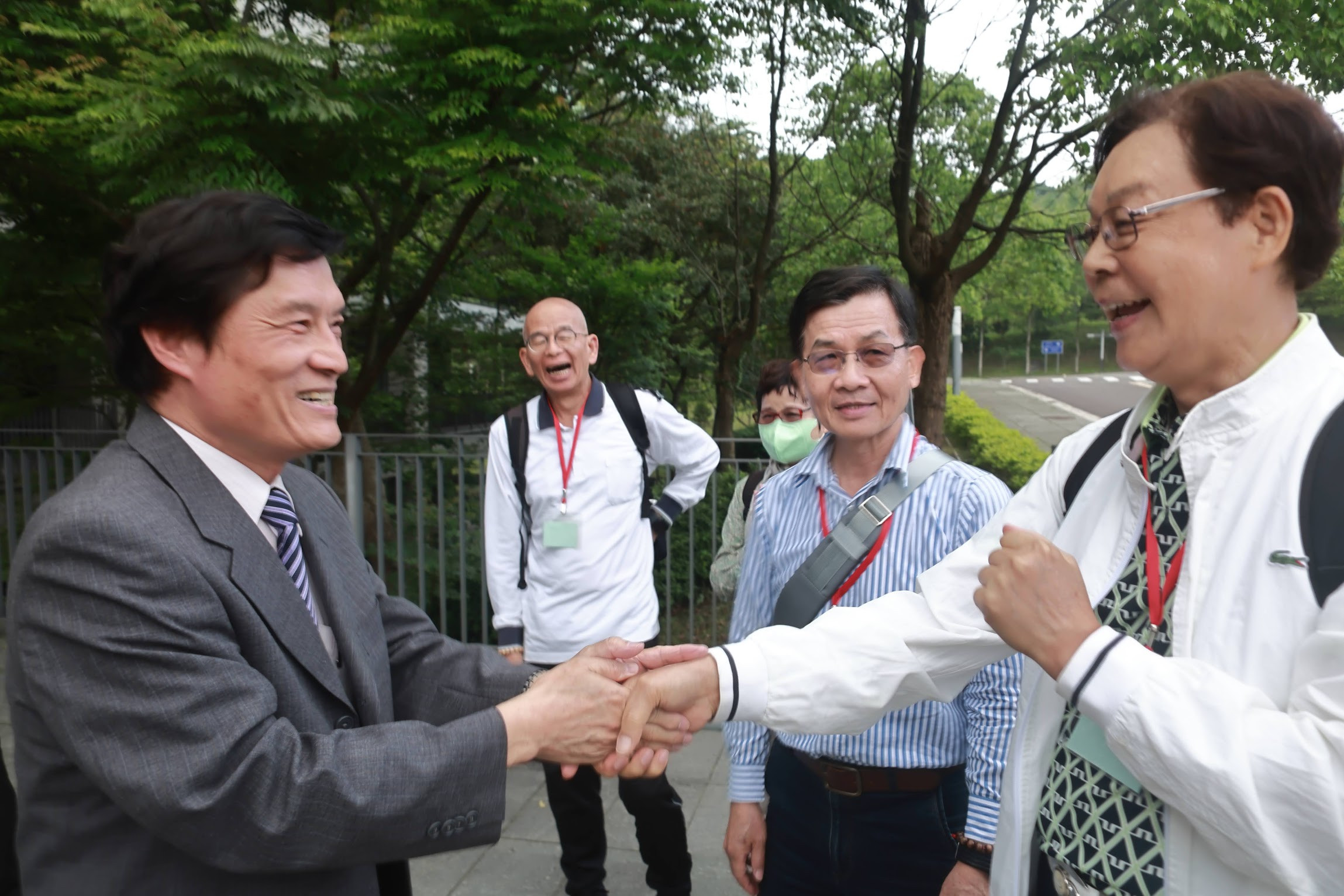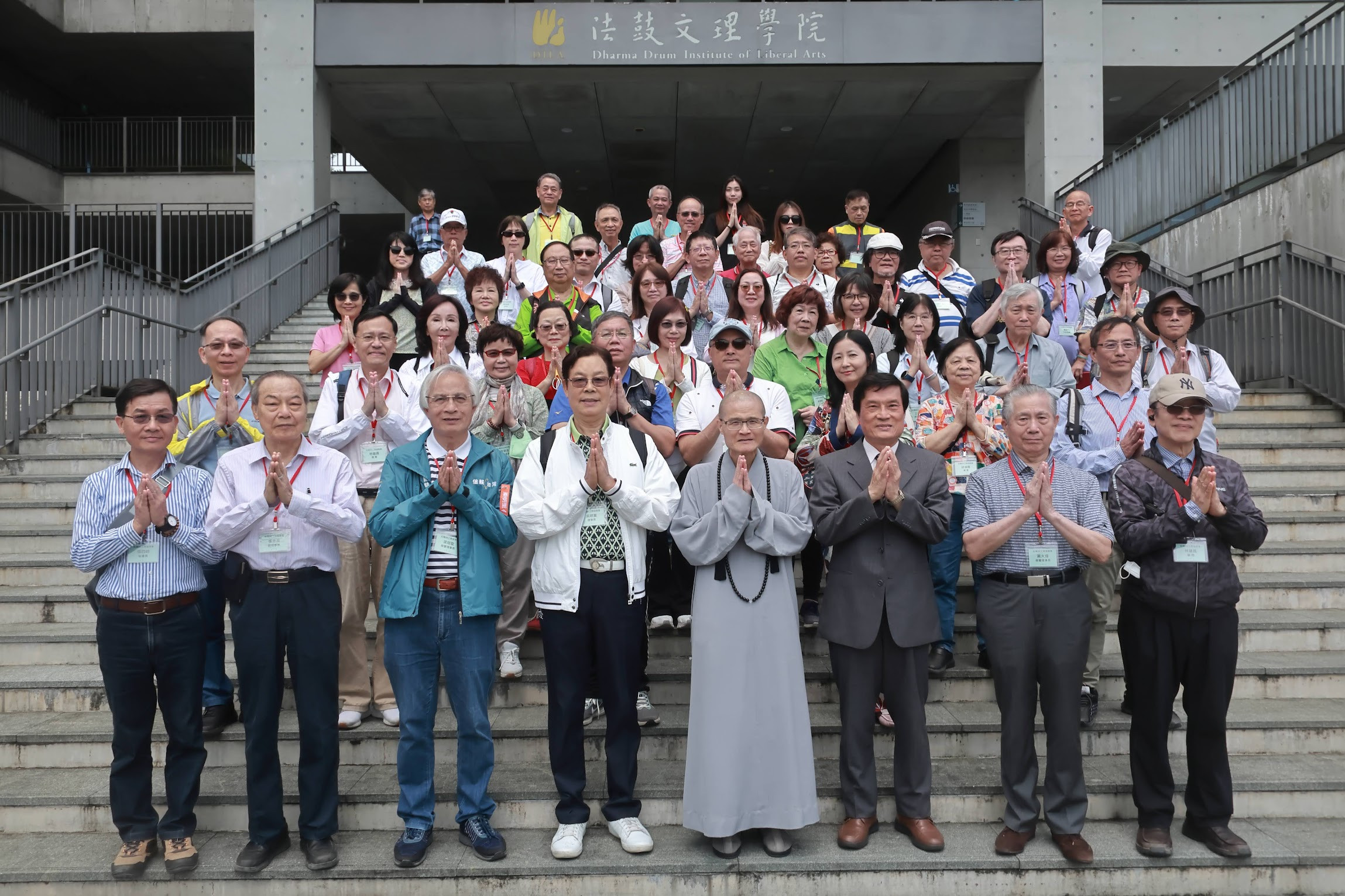 中午車程至法鼓文理學院餐廳用素午齋,果暉方丈和尚前來關懷,陳定銘校長親自接待,果東退居方丈也前來致意,以及互贈結緣品。位於新北市金山區西湖里的法鼓文理學院,前身是1978年成立的中華學術院佛學研究所以及1987年設立的中華佛學研究所。1992成立籌備處,2014法鼓人文社會學院正式獲准成立,同年合併法鼓佛教學院,更名為法鼓文理學院。目前設有佛教學系包括學士/碩士/博士班,以及人文社會學群、終身教育及研究中心。