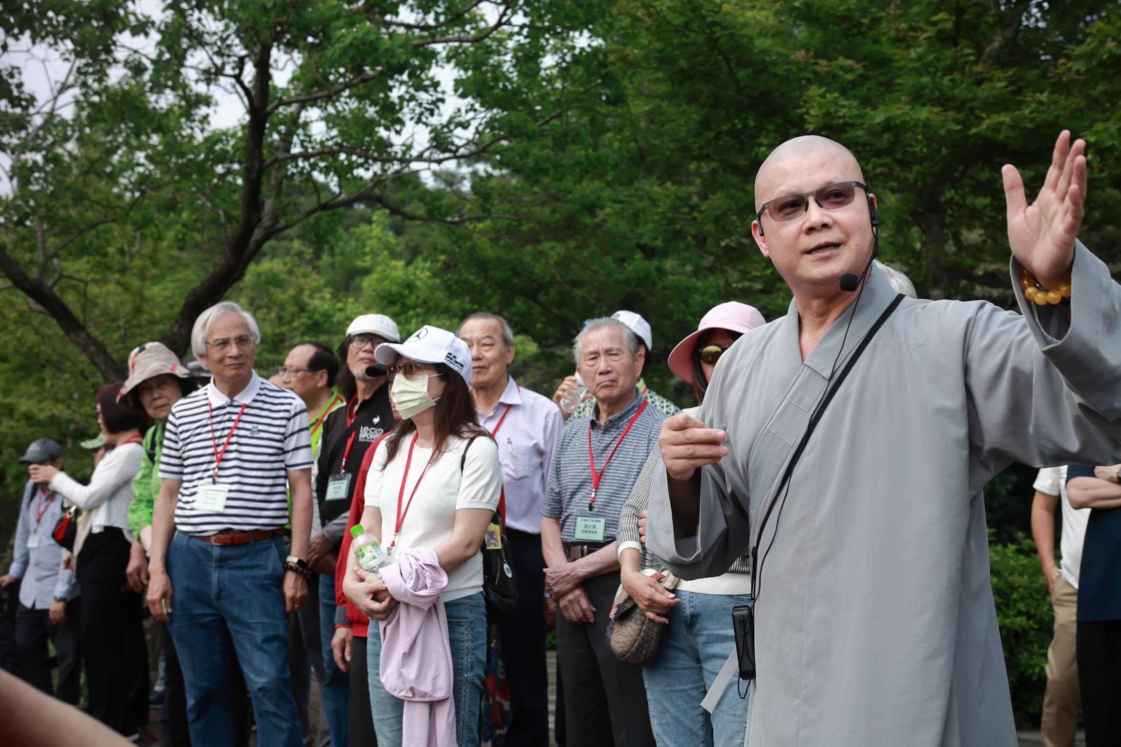 午餐後前往法鼓山園區參訪祈願觀音殿、導覽開山紀念館、和大殿拜佛體驗。法鼓山位於新北市金山區三界里,由聖嚴法師(1931-2009)集合十方大德,建設整合教育、修行、文化志業作為「法鼓山世界佛教教育園區」。1989年因緣購得金山土地、1996年於第一期工程大殿正下方設「地宮」2005年正式落成開山,發展成國際性的宗教團體。聖嚴法師繼承臨濟、曹洞兩大法脈,整合印度及漢傳諸宗異同,參考流行於韓國、日本、越南禪法,和南傳內觀法門、藏傳次第修法,創立「中華禪法鼓宗」。園區導覽後又回到法鼓文理學院,兩位法師帶領走在林間步道行禪,又在大草地一邊觀看海天美景,一邊體會動禪,讓參與者有身心放鬆、安定的輕安感受。