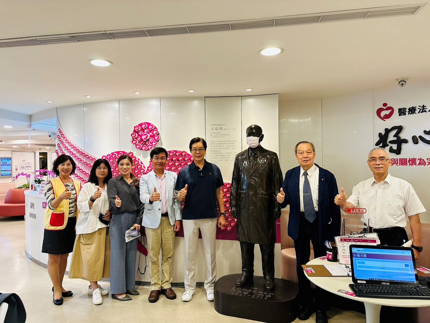 本會吳明富理事長多年支持好心肝基金會,肯認肝病防治學術基金會榮譽董事長宋瑞樓教授,自民國83年起發起消滅肝病的革命,至今已卌年,成果豐碩。同時間,吳理事長為照顧本會理監事及會員們之身體健康,特與基金會合作,辦理本會保肝健檢服務。緣於本月2日率楊忠吉副理事長、張四明秘書長、王如寄副秘書長、楊清泉副秘書長及會員莊子慧小姐,參訪肝病防治學術基金會及好心肝健康中心,實地瞭解基金會之服務宗旨與健檢流程。