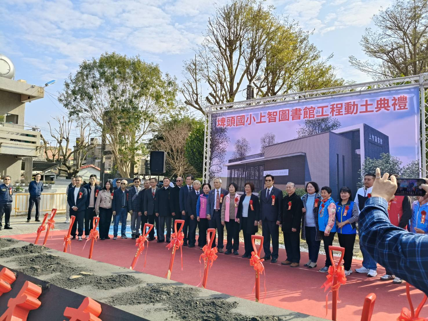 由本會、上洋產業股份有限公司,以及吳明富理事長共同捐建的「上智圖書館」,於115年1月23日(星期五)上午,在彰化縣埤頭國小舉行動土典禮。